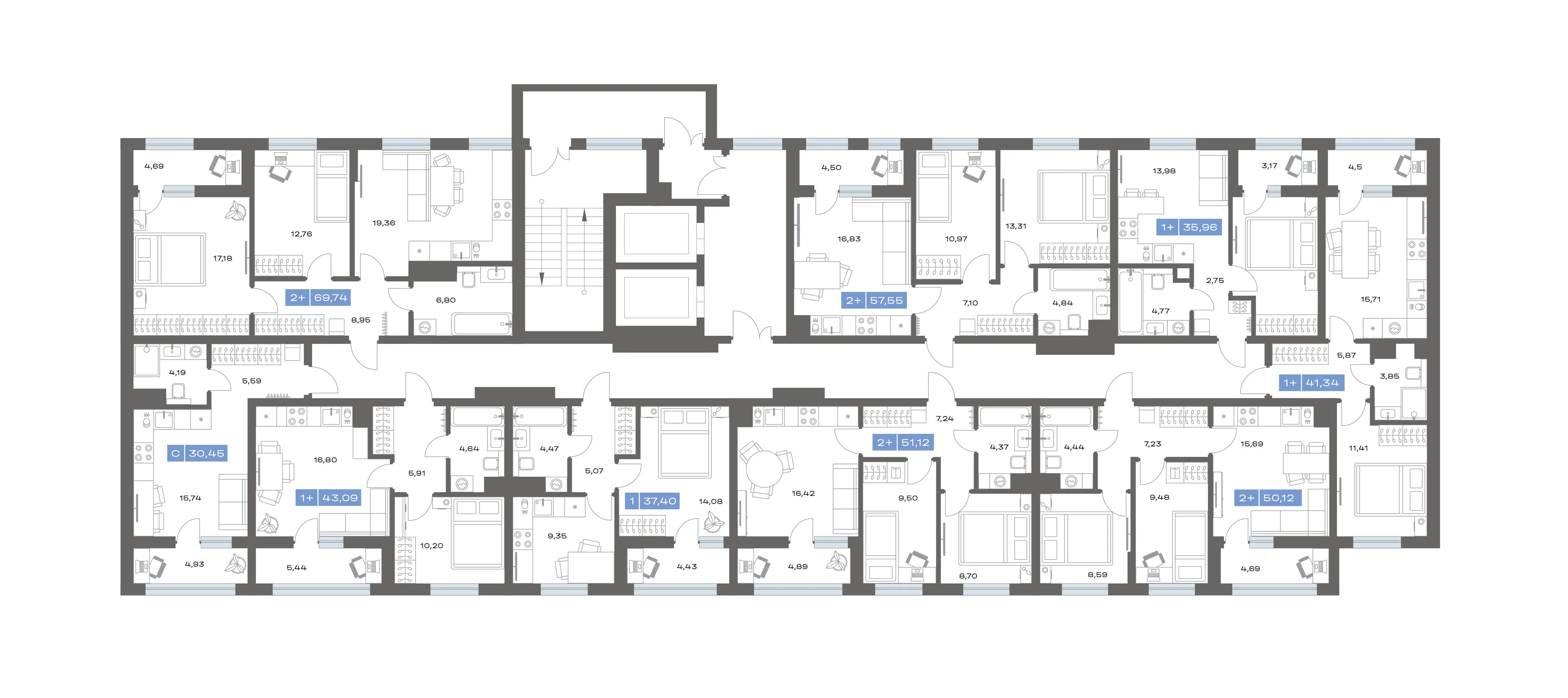 1-комнатная 43.09 м²