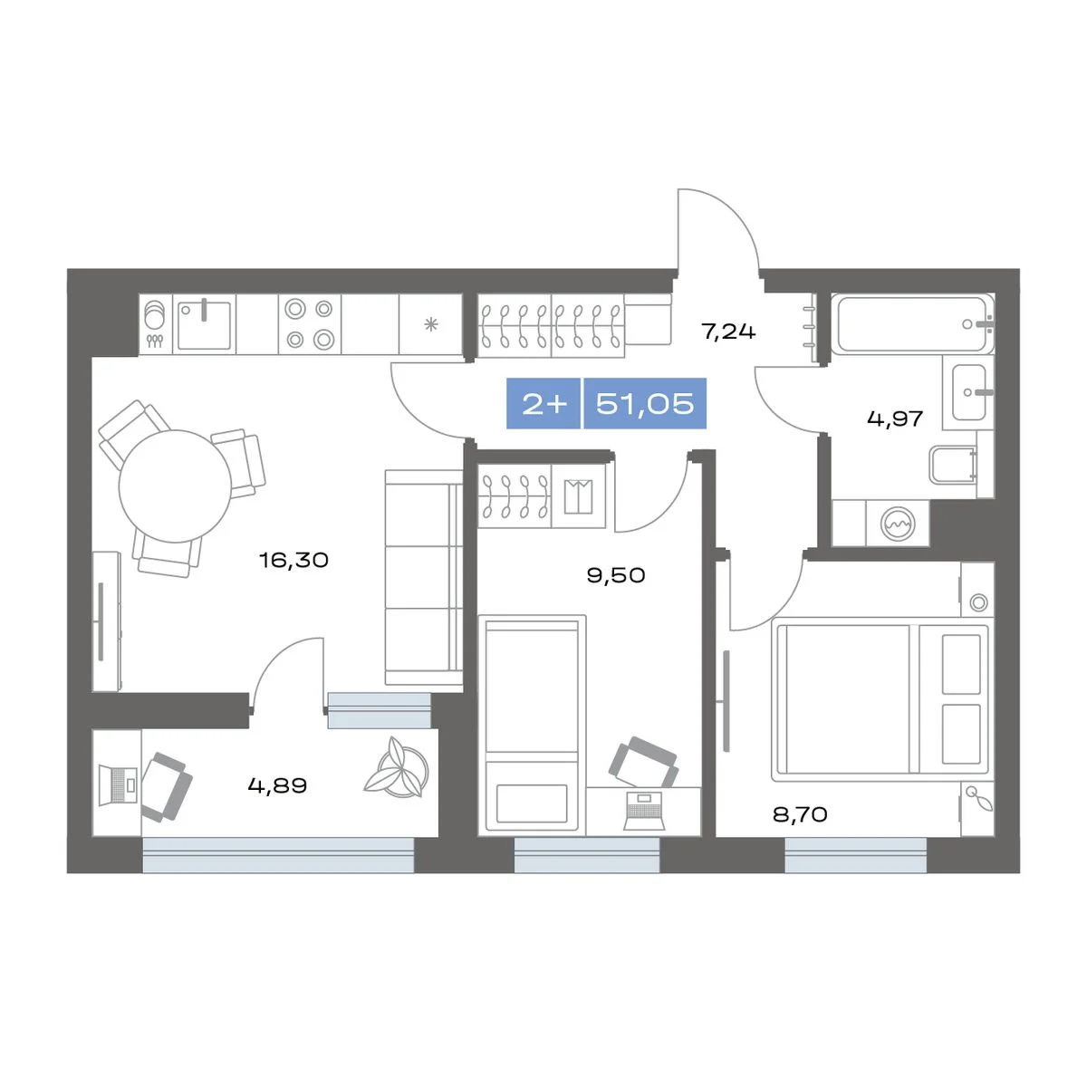 2-комнатная 51.05 м2