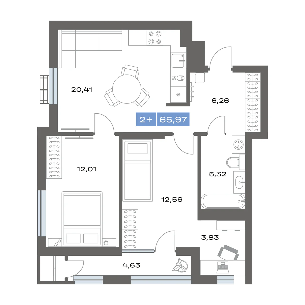 2-комнатная 60.39 м²