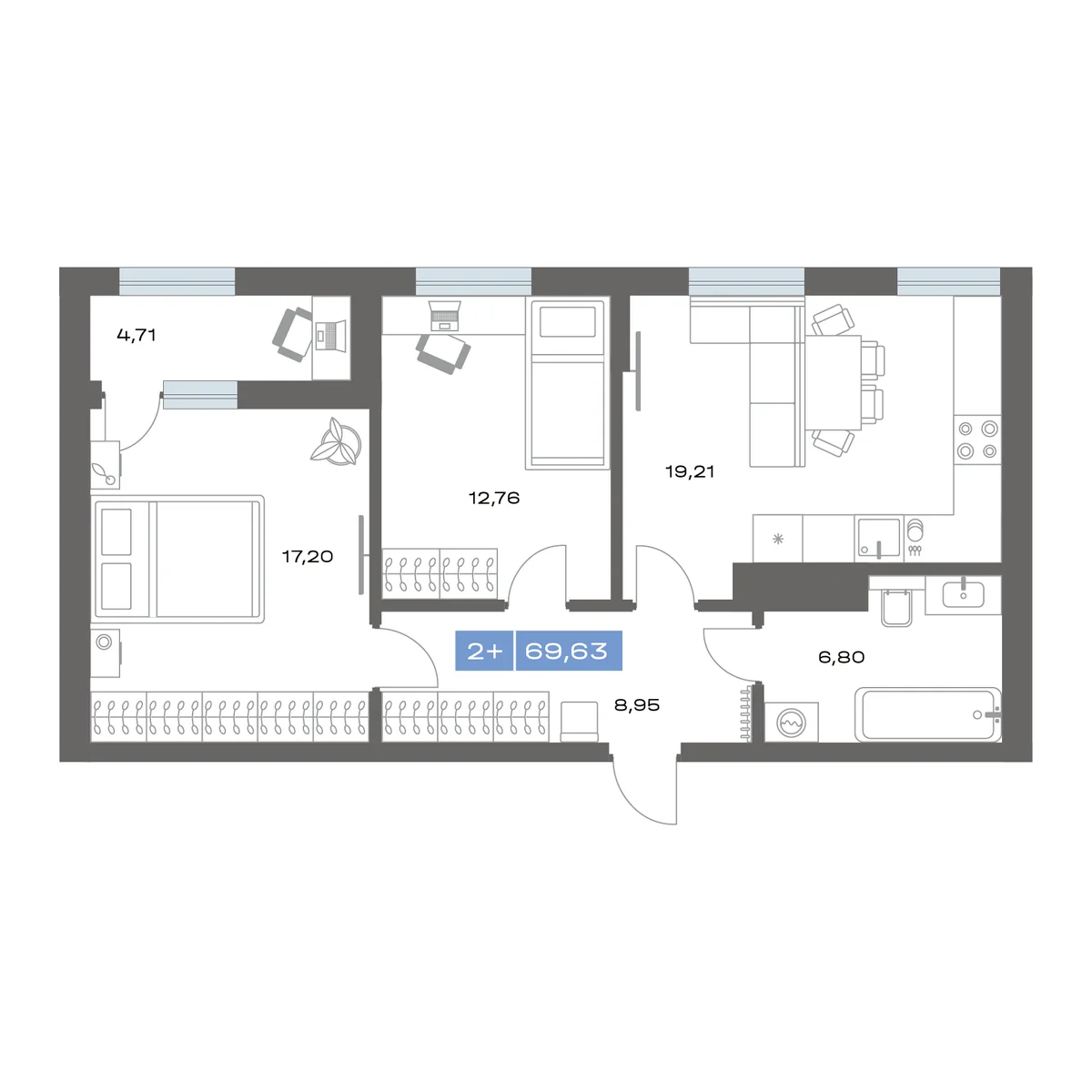 2-комнатная 69.63 м²