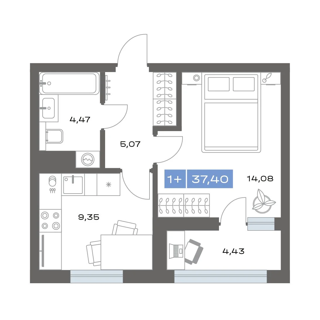 1-комнатная35.59 м28 этаж из 14