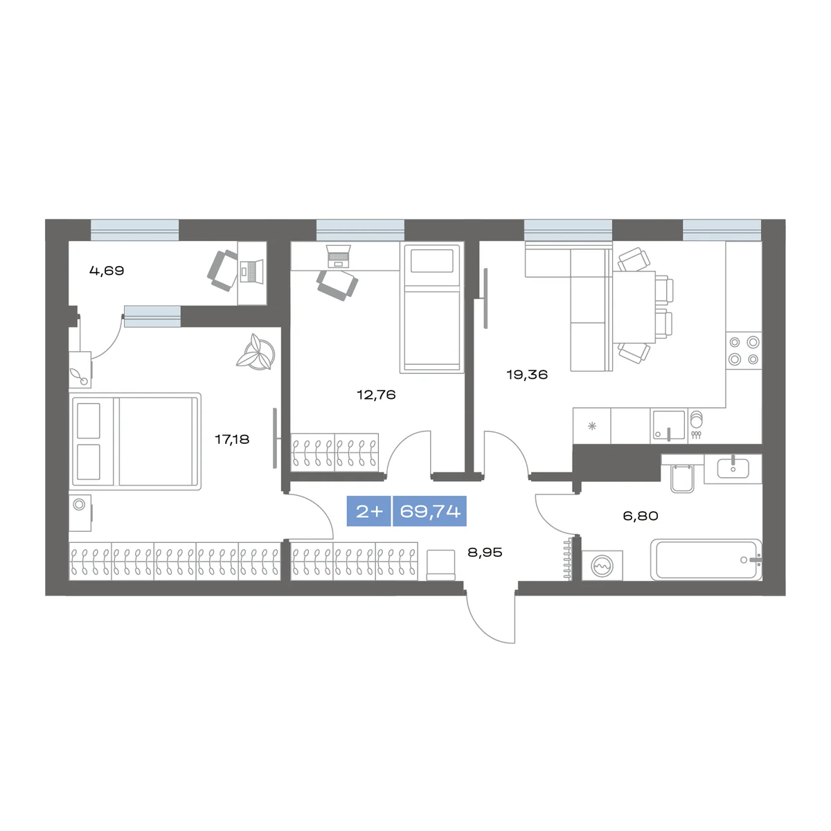 2-комнатная69.59 м27 этаж из 14